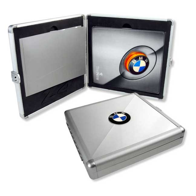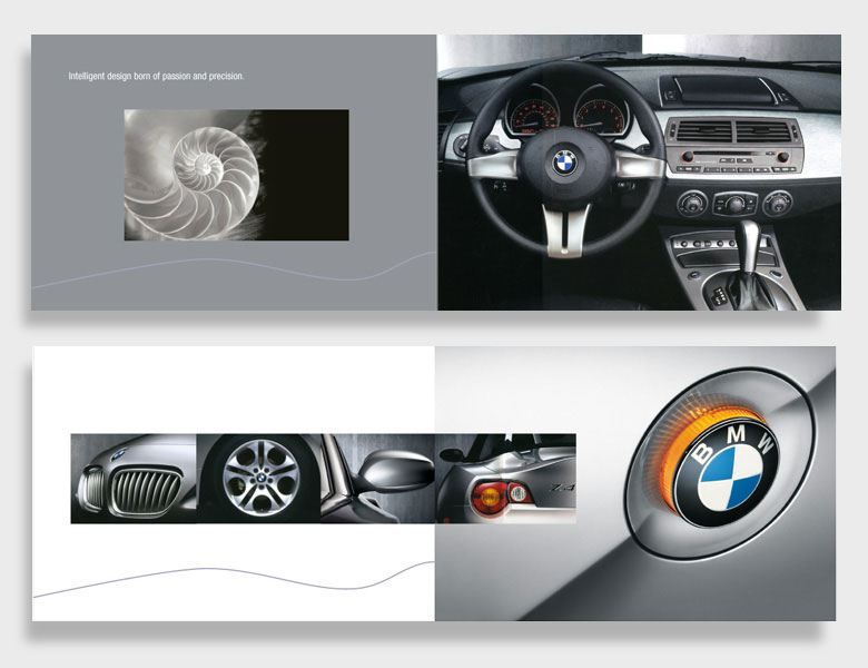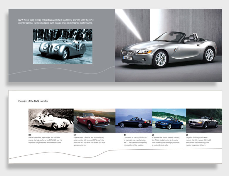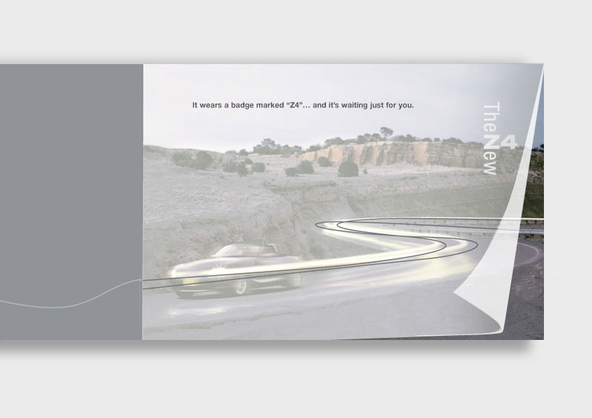 Create sales launch kit for BMW's sales personnel to introduce the new Z4 roadster model. Idea for concept was to showcase the model's new “flame” design. Cover of aluminum case resembles side gill of actual car model. Inside kit contains support material information.